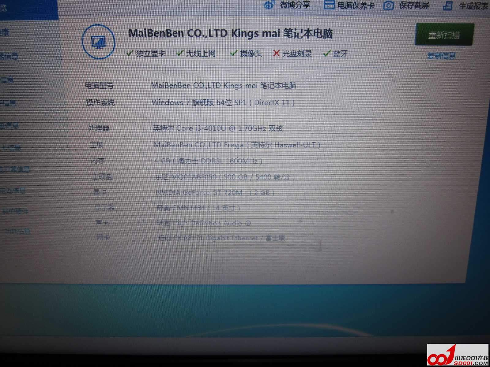 ) i3 4010 4G 500G GT720/2G独显 14寸(1600X900高分屏)