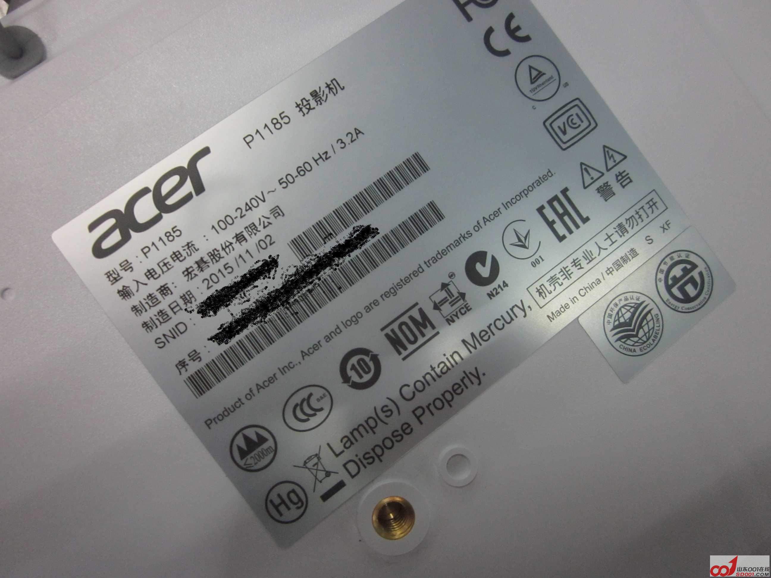 宏基P1185投影机 DLP 3D 高清 3200刘明高亮 15年12月出厂最新款 99新成色 1700元出