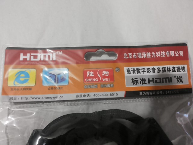 全新库存胜为HDMI数字高清线型号HC-1018,支持三D模式,以太网传输,带蛇皮包装,镀金接口。