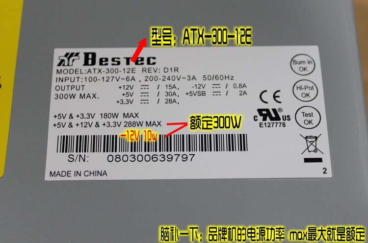 台湾联德bestec出品,HP品牌机标配,atx台式机电源,支持市场零售款的机箱!