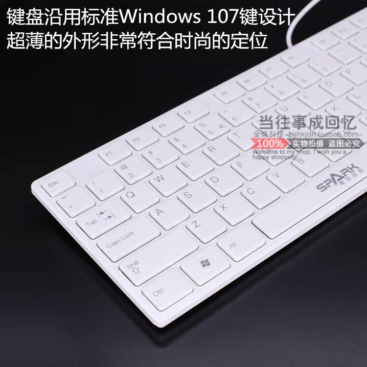 键盘沿用标准Windows 107键设计,超薄的外形非常符合时尚的定位,对于习惯于笔记本键盘的朋友来说手感绝对满意,拿来搭配笔记本外设使用也再好不过。