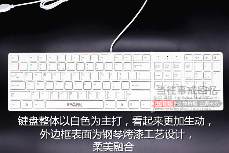 键盘整体以白色为主打,看起来更加生动,键盘外边框表面为钢琴烤漆工艺设计,键盘为笔记本化规划,并且经过特殊的处理,对手感起到更好支持,键盘键程舒适,没有任何阻尼感,配上悬浮式巧克力按键,为打字、游戏带来无限快感!