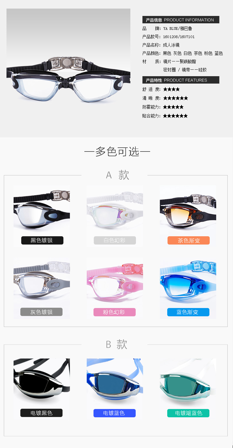 [全国] [售] 白菜价系列 19元包邮雅巴鲁泳镜平光电镀防雾高清