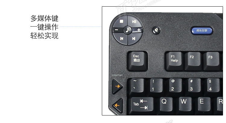 SK-8815键盘整体以黑色为主色调,使其看上去稳重而不失大方精巧,给人的第一感觉挺酷,让人看起来就感觉舒服。同时,IBM SK-8815键盘的按键采用的是静音设计,IBM SK-8815键盘上方设有我的文档、计算器、电子邮件、电子表格等多个多媒体快捷按键。键盘前端右部还设有两个USB HUB,用户可以很方便的与U盘、MP3、鼠标等连接。IBM SK-8815键盘作为一款多媒体键盘,左上方圆形区域为影音快捷按键,IBM SK-8815键盘设置有播放、暂停、上一首、下一首及音量的调节,用户在播放影音文件时,可以很方便的根据自己的爱好进行操作。键盘设计相当人性化,再加上“肤质”感材质的手托,为它增添了不少高贵时尚的气息。简单大胆但不张扬的点缀配色,出色的功能键位置设计,同时又是国际著名的键盘OEM生产商SK(旭丽)所制造,可谓给这款产品锦上添花,可以说是IBM键盘精品中的精品。