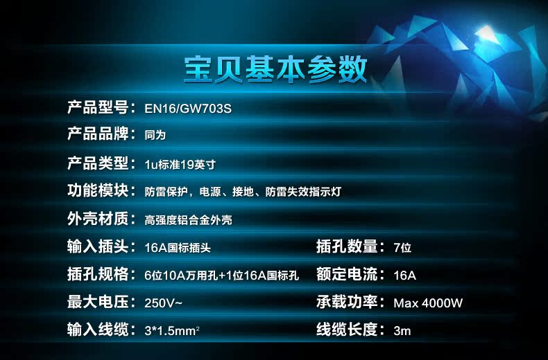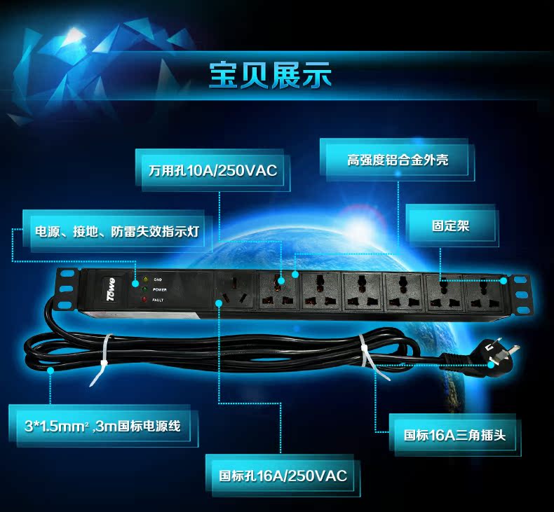 PDU的插头是16a的 需要是16a的面板才能插进去用 请注意!