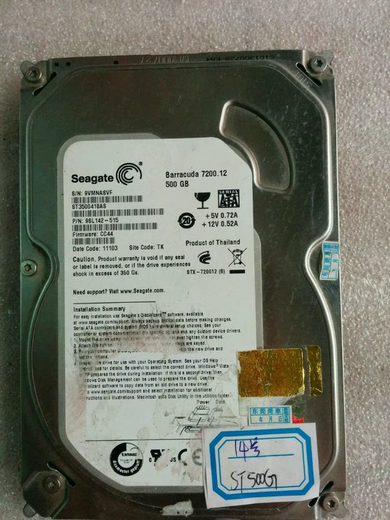 【东莞】【售】出个希捷500G硬盘,台式串口,成色不好。110包邮