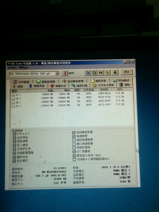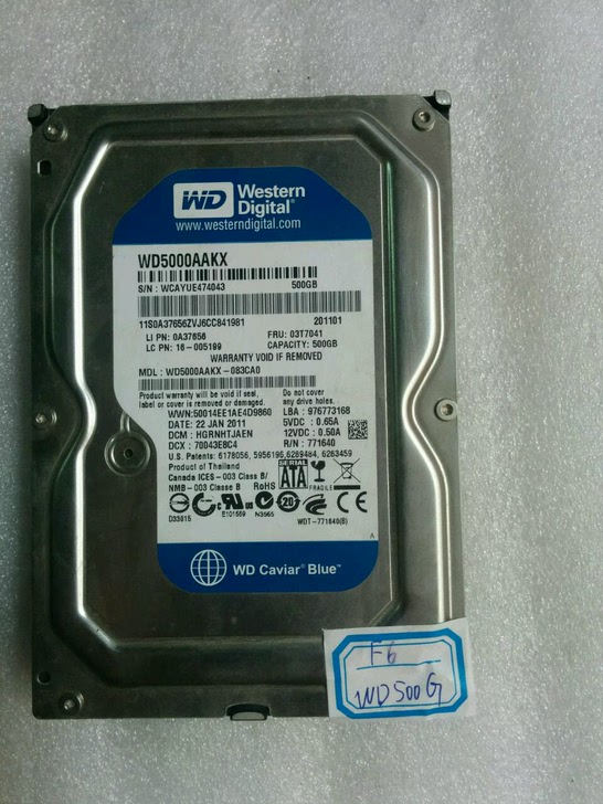 F6号。西部数据蓝盘。500G台式。SATA接口。健康无坏道。
