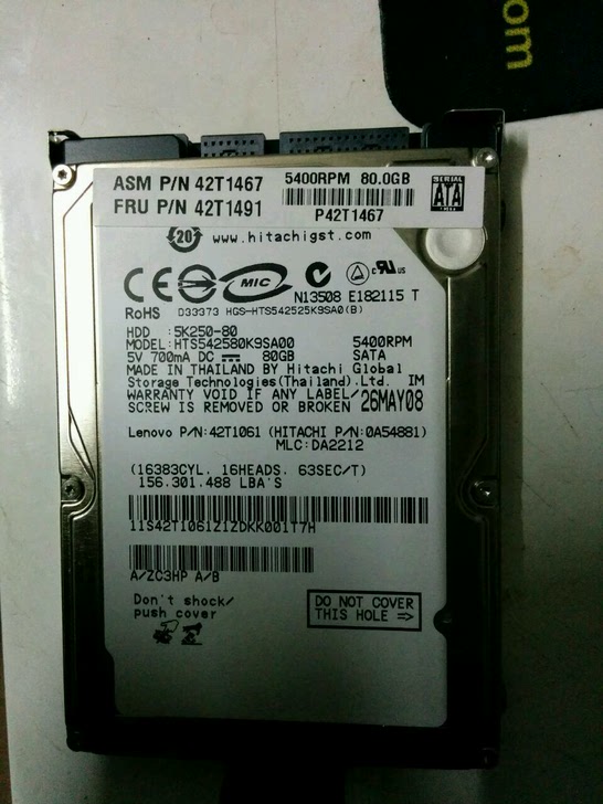 【售】【东莞】笔记本80G硬盘,健康无坏道,正常使用