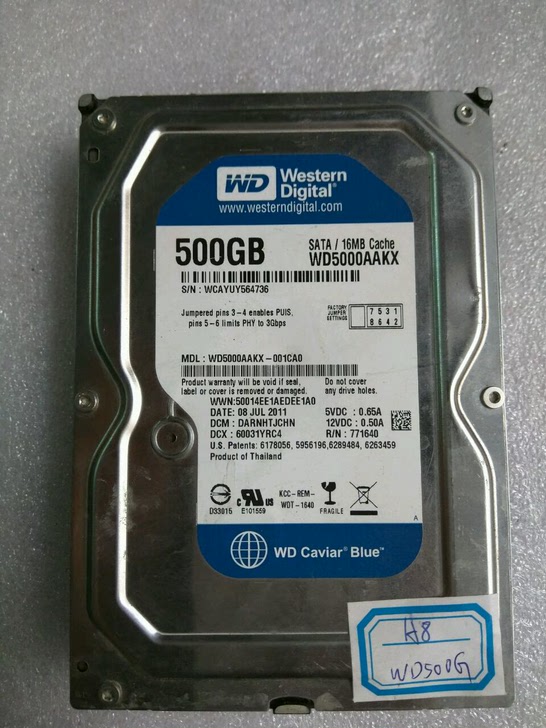 A8。西数蓝盘。500G。台式串口硬盘。健康无坏道。