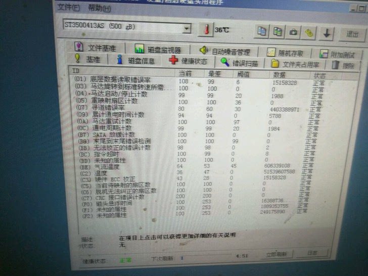 A9。希捷500G健康盘。正常使用。台式SATA接口。通电五千多。