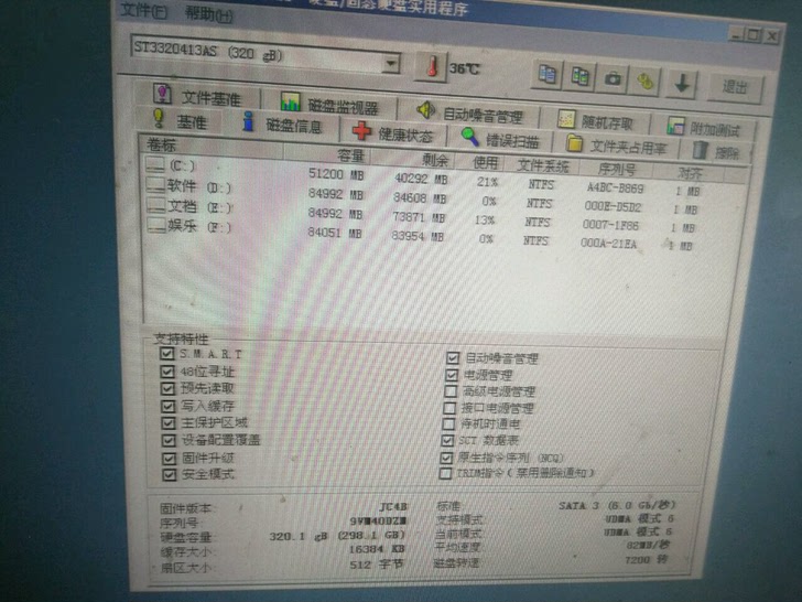 希捷320G台式硬盘SATA接口。正常使用。健康如图。65包邮。