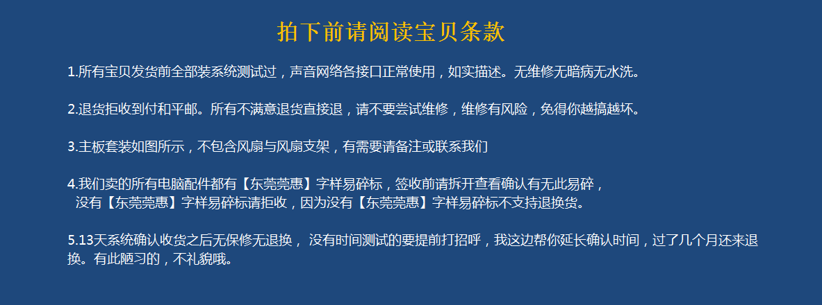 所有主板都是二手拆机主板,无维修无暗病无水洗,正常使用,均装过系统测试发货。(店家都是一台电脑装一半套过来开机,PE下装系统的建议多下个深度。)