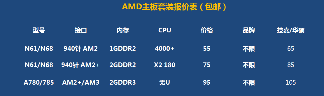 二手拆机华硕AMD平台 DDR2/DDR3AM2/AM2+/AM3全集成套装主板https://item.taobao.com/item.htm?spm=686.1000925.0.0.QixdWe&id=541824003065