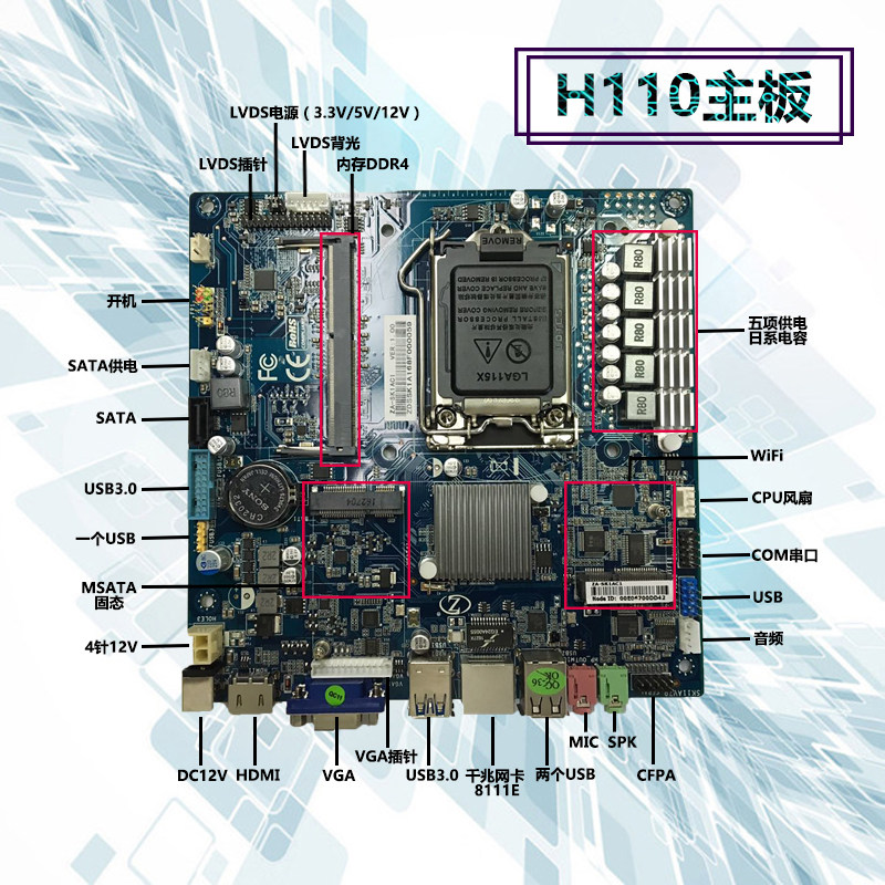 豆希DX-H110一体机主板WIFI/MSATA/ITX主板/LGA1151/DC 12V-19V迷你DIY主板USB3.0,DDR4内存