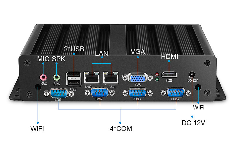【双网4个com串口无风扇工控机550】迷你工控电脑小主机D2550双网四核4个com无风扇H...