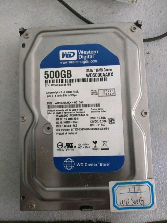 【售】【东莞】西数蓝盘。正常使用。500G。台式串口。115包邮