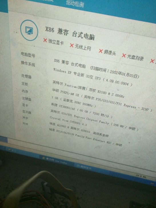华硕G31+1G800+E2180=65包邮。正常使用。原装挡板。