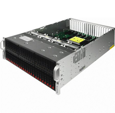 思腾 IW4200-8G为用户提供一台服务器内最高GPU / CPU比的解决方案,这个平台在4U的外形下,两颗E5-2600V3/V4至强处理器,匹配最多高达8个NVIDIA图形处理器和1.5TB的系统内存。它可以让你轻松应对分子动力学模拟、排序,和其他的GPU移植的应用程序,是复杂模型计算的理想选择,