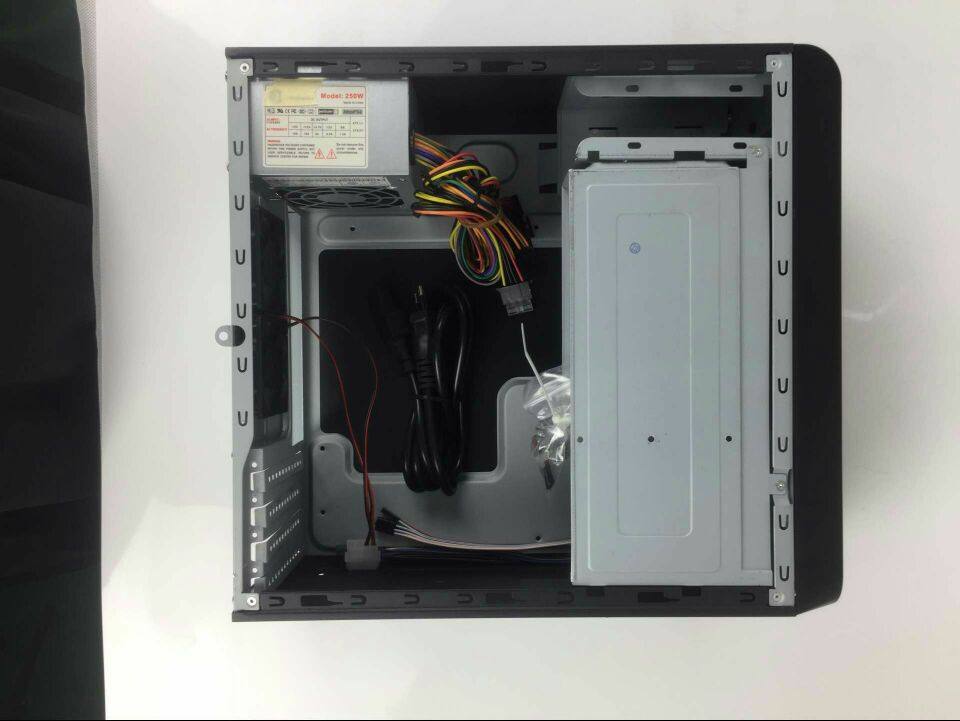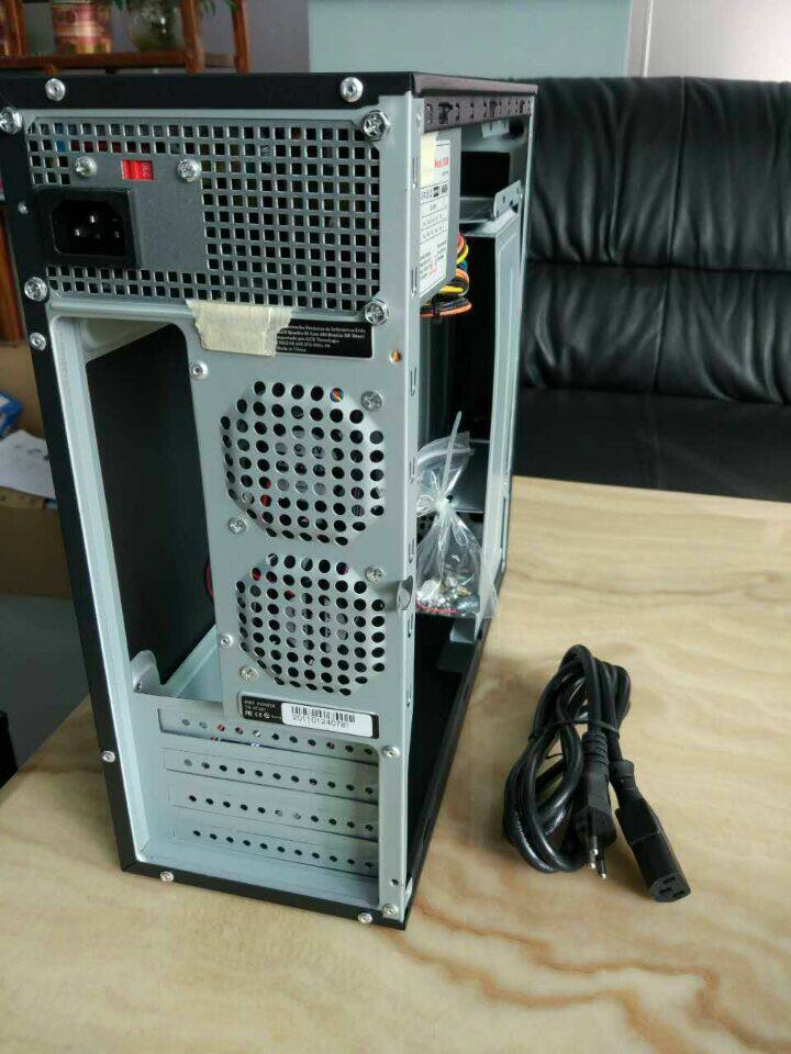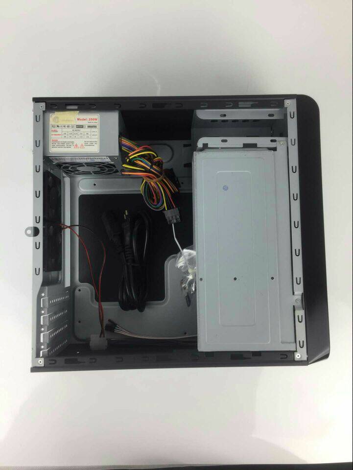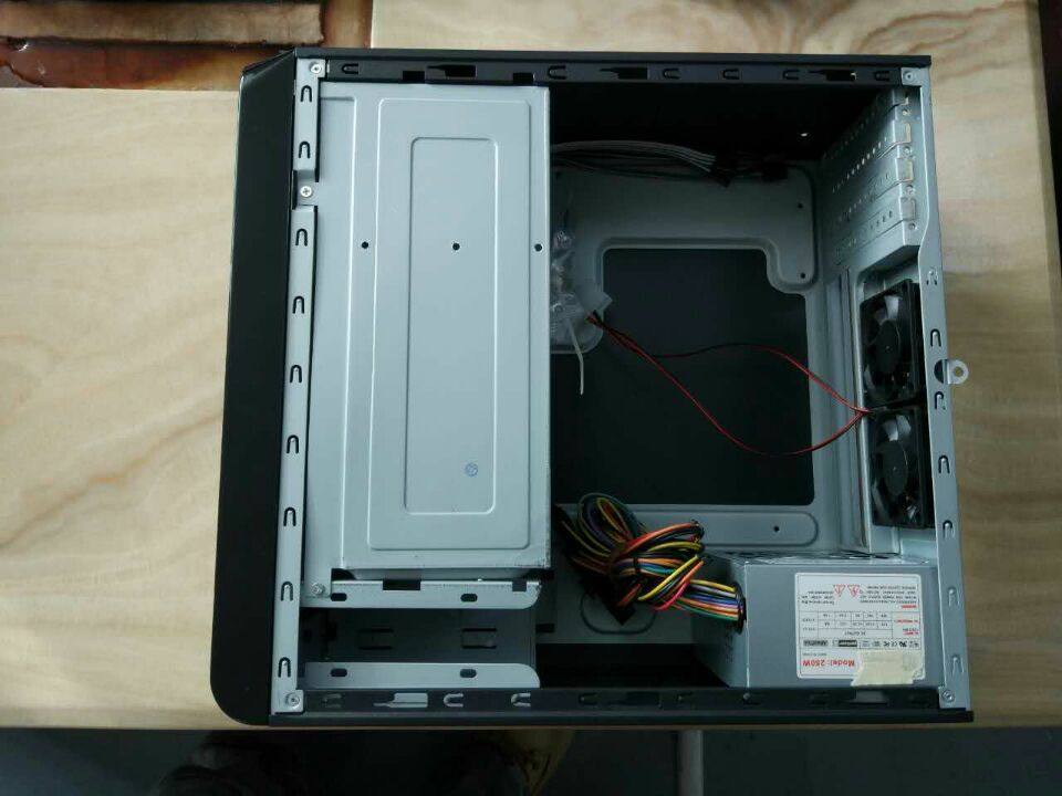 本款机箱为国外客户定制机箱,钢板比较后,做工不错,支持matx主板,不支持大主板,支持小显卡,标配250W电源,测试过支持i3,i5等CPU,以及独立小显卡,本款支持2个大硬盘,支持光驱,标配2个小风扇,适合做NAS群晖小型服务器等设备。