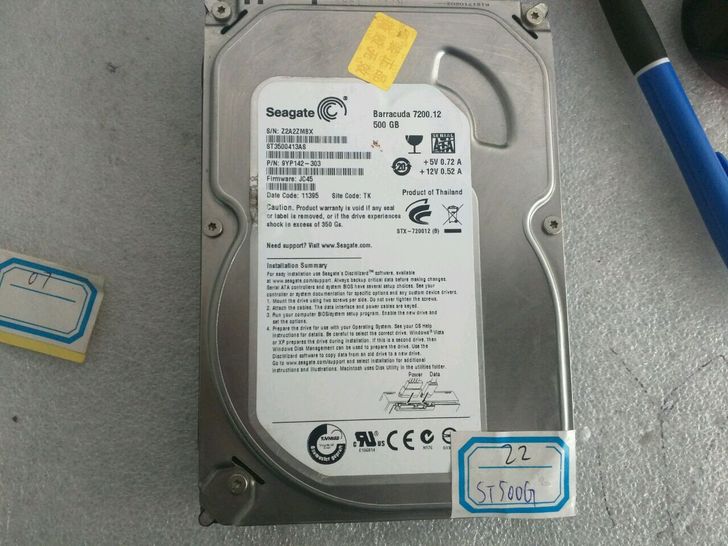 22号。希捷500G。台式SATA接口单碟薄盘。正常使用。108包邮
