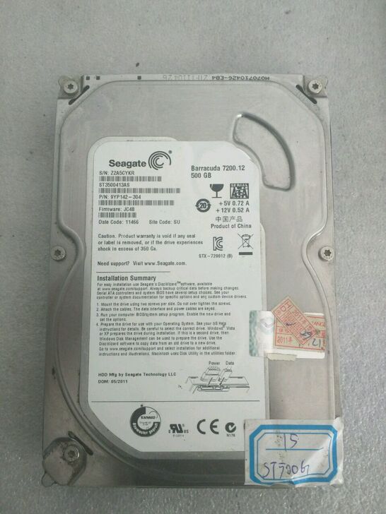 15号。希捷薄盘。500G台式SATA接口。正常使用。110包邮。