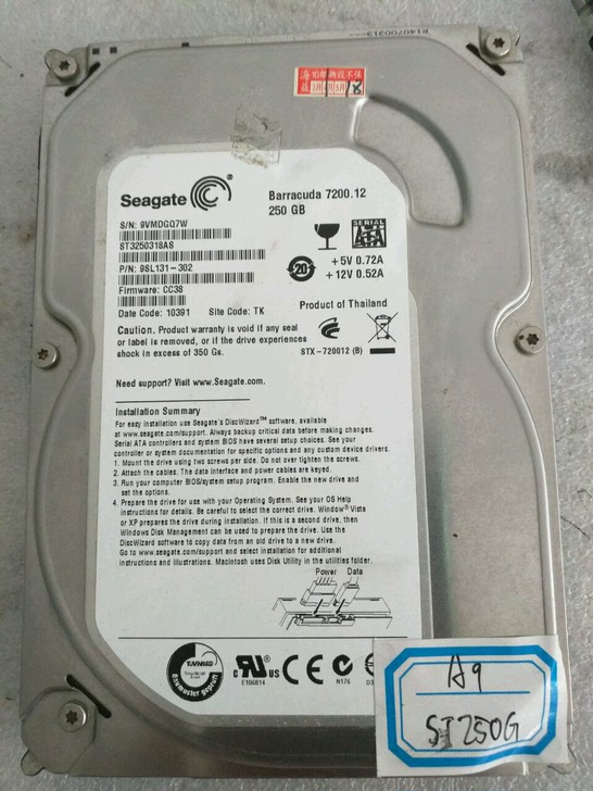A2。希捷小容量250G台式硬盘。SATA接口。健康盘。58包邮。附淘宝链接