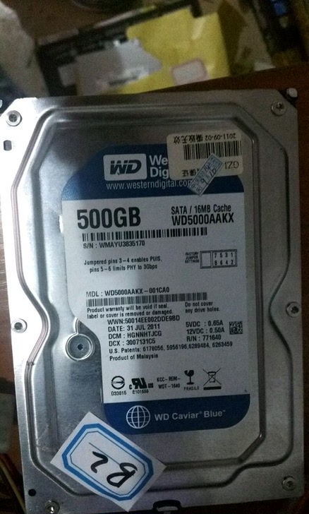B2.西数蓝盘500G台式串口硬盘。健康无坏道。115包邮。