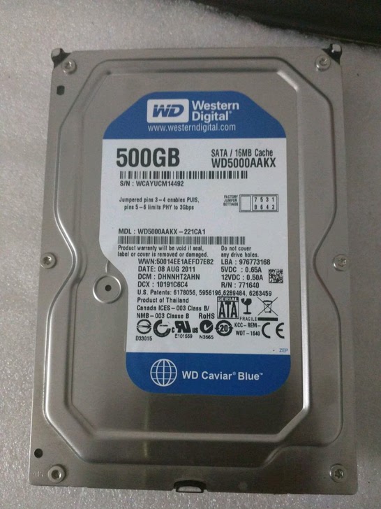 【售】【东莞】西数蓝盘。500G台式串口硬盘健康无坏道。SATA3接口