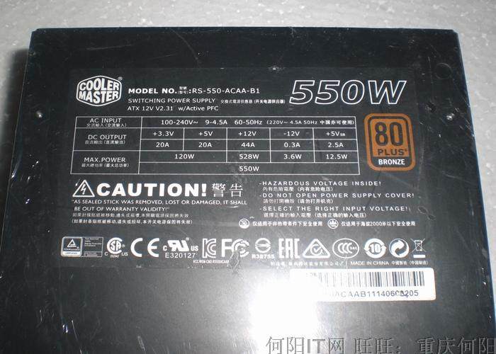 酷冷至尊GX550为80Plus铜牌认证,单路12v宽幅电源,输出能力非常出色。