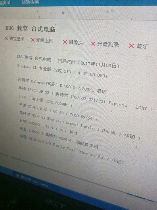 售出不退无售后。接受再拍。不接受不用拍不用问。拆机主板。成色如图不定义。主板装系统有声网。内存是金士顿双面窄条2G800.CPUE1500.快递为快捷快递。搭配的是希捷250G硬盘。硬盘到手包测试。2套华硕G31+2G800+E1500+3个250G一起245包邮。一起3台机,板子挂了一个。硬盘在跑MHDD,要图私聊我,健康图上了