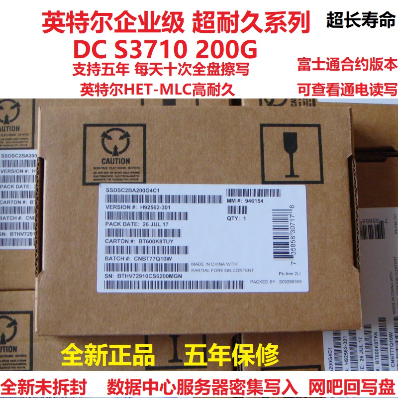全新英特尔 S3710 200G 399元包邮开车,富士通定制版,英特尔原盒包装,可以查看读写,链接: