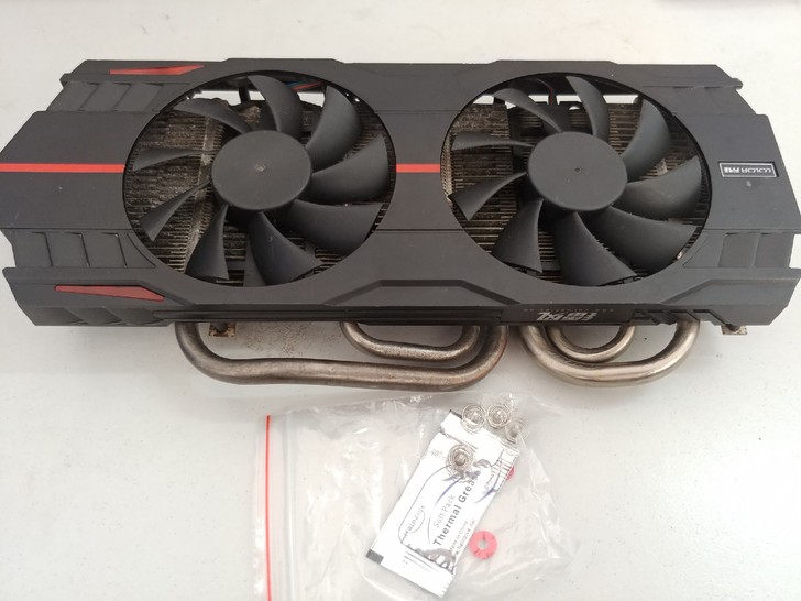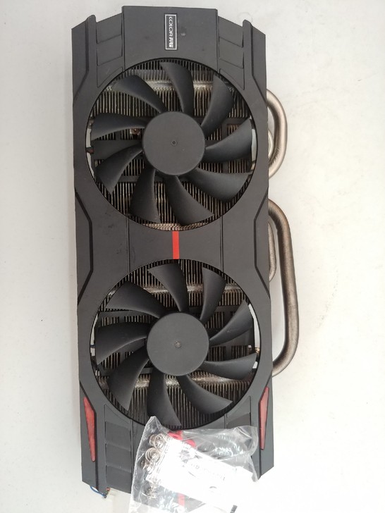 如题,七彩虹镭风的散热器,双风扇,54mm孔距,适合amd rx5700系列/hd7950、7970系列/r9 290系列/390系列等54mm孔距显卡。散热器螺丝全,状态良好,就是散热片看相差点但是散热性能还是杠杠的。参考数据:在5700xt公版卡上使用,默频2014/875的频率下室温23度,显卡峰值温度72度。武汉本地可以自提,外地走闲鱼非偏远包邮,偏远按实际邮费收取。