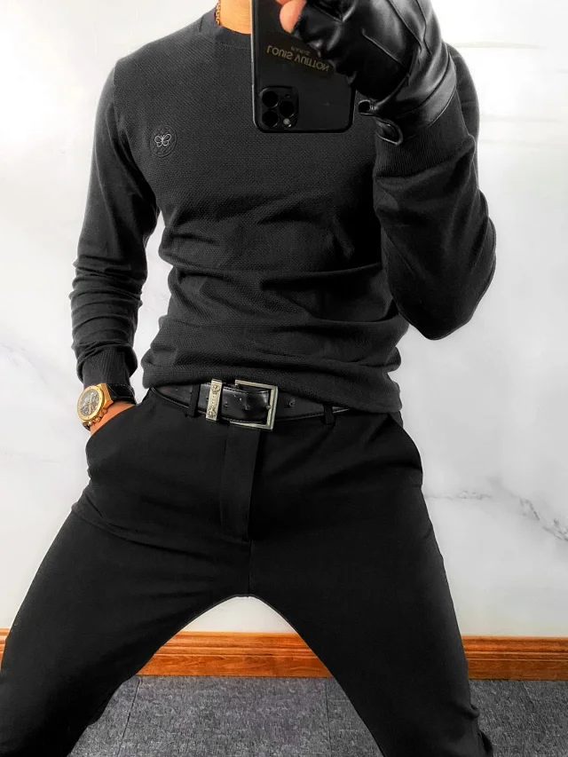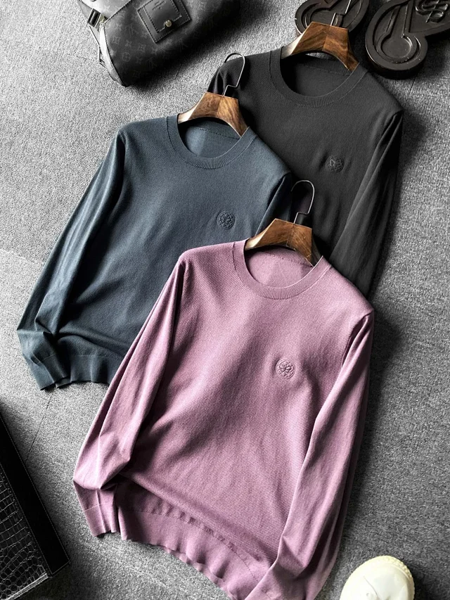 蝴蝶穿花【高端!52%羊毛!菠萝针织工艺】拉丝镀金蝴蝶新标+横机菠萝针织羊毛衫秋冬新品男士圆领针织衫毛衣上衣