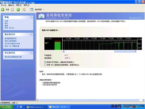 上图为影驰G8800GTS待机状态下的GPU温度,正常状态下的待机温度是66度。
