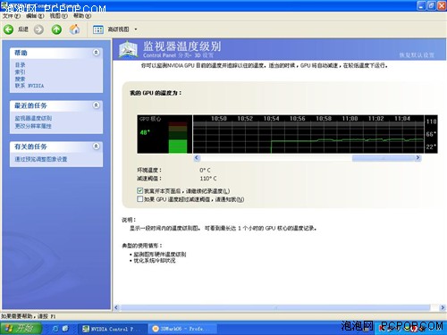 上图为影驰G8800GTS安装上水冷设备后的峰值状态温度,显示为48度,比正常状态下降低了33度。