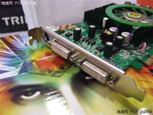 显卡的输出接口采用了双DVI+TV-OUT的输出接口,并随卡附送了DVI转VGA的视频转接头,方便用户接驳各种显示设备。