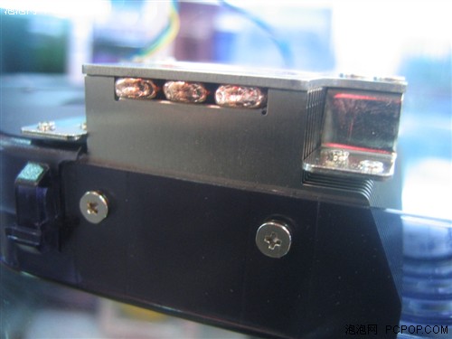 显卡芯片接触的铜底部分有三根热管连接。