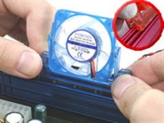 厚度的限制,兼容性比较好。在散热片上带有360度可旋转式的4cm风扇,并且可以