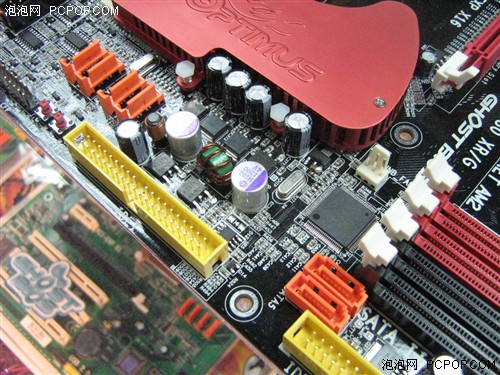 硬盘接口方面,提供了6个SATAII接口,支持RAID 0,1,0+1模式,方便用户做硬盘RAID,并且SATAII接口布局比较分散,配置多硬盘的时候不会发生内部布线混乱的情况,另外还提供了两个IDE接口,方便用户使用IDE接口的光驱或是老式IDE硬盘。