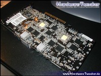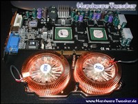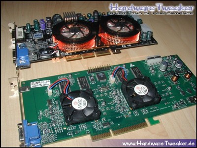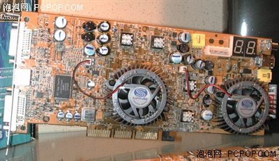 可能双核心9800Pro受到了一部分专业用户的欢迎吧,后来又有厂商推出了四核心的9800Pro/XT显卡,并且使用了罕见的双PCB设计——看来双PCB不是7950GX2的专利: