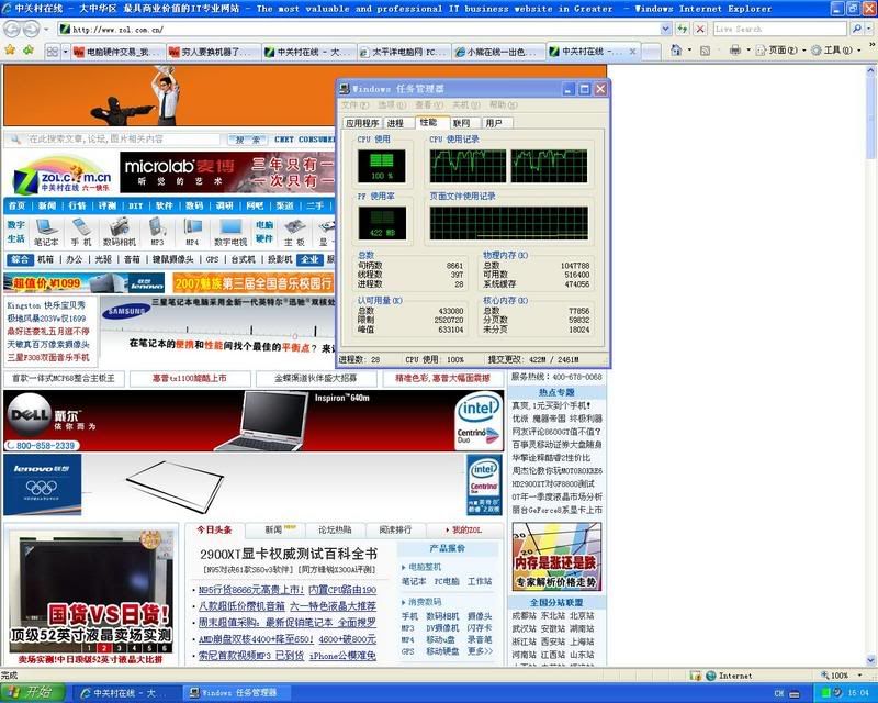 我刚刚换了新机器,这么跟你说,原来的p4 2。4g 512m内存,开zol首页,cpu立刻100%,用了e6600 2g内存之后,开zol首页2个核心使用 率分别是 11%,12%,连续开10个 分别是88%76%:loveliness: