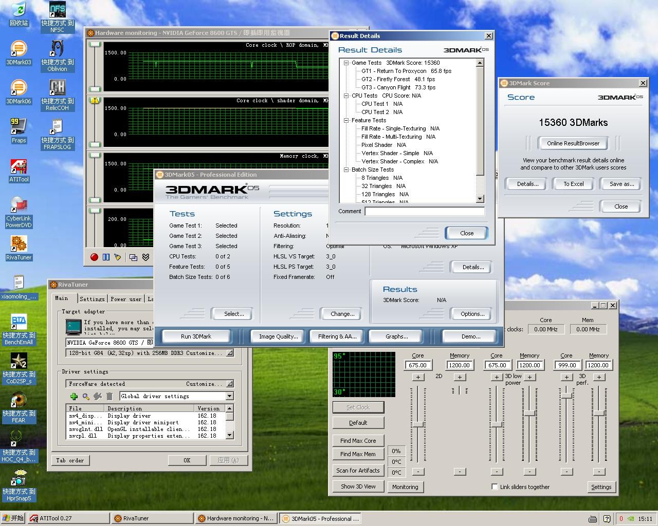 修改之后的性能有了质的飞跃,而且是8600GT无法企及的性能高度。改造后实测核心电压只是1.53V左右,长期使用只要注意显卡散热问题不大。