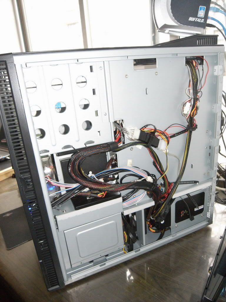 原配的3个12CM风扇,加上CPU散热器的12CM风扇,上面的硬盘笼子加了个12CM,8800GTS显卡风扇,都是最低速,确实蛮安静的啊(除了电源声音吵点)。