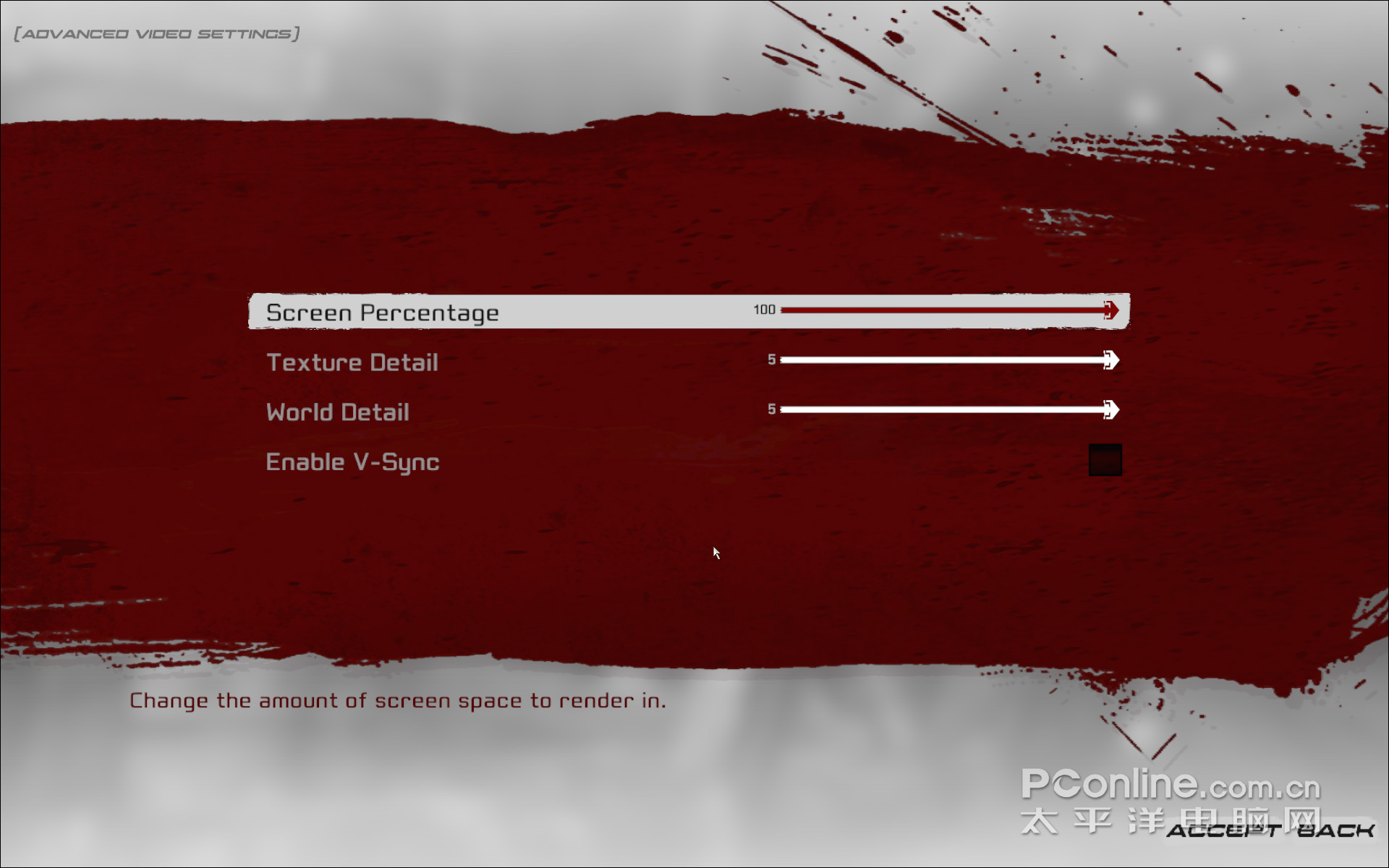 纹理贴图细节“Texture Detail”、环境的细节“World Detail”全开,关闭垂直同步“Enable V-Sync”等等。