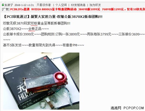 原帖由 xixihaha 于 2008-1-30 15:53 发表 2008年的春节前夕,可以说南方爆发了50年难遇的风雪灾害,不但影响了迫切回家团圆的旅客,IT行业也受到了或多或少的影响,最近发布的不少新产品也在市场上难觅踪迹,尤其是近期AMD发布的最新双核产品HD3870 X2一直是 ...