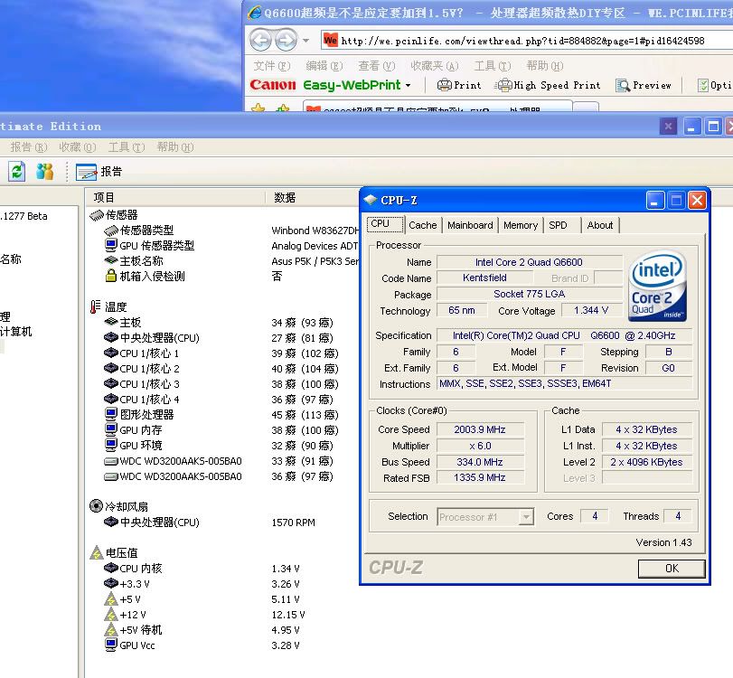 请问LZ和3楼的,你们的环境温度是多少?超到多少?电压多少?用的什么散热?我的Q6600电压1.42v,400x9,怎么vista桌面温度就要35度啊?已经上了利民120E,环境温度屋里开窗户25度。