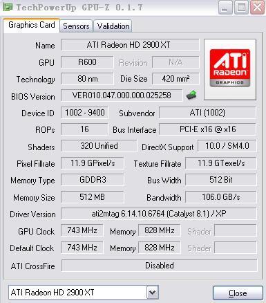 2900XT因该是比3870单核要强的.无论是规格,还是能耗,外观,重量:p 卡不是2手的,是全新的.因为关系特殊,所以价格很好,连保修标签都给了我一把,自己想写几号就几号:p 现在比较痛苦的是买不到8Pin的电源线...测试就算了.平台老掉牙了,夏天在换,现在将就用用吧:loveliness: NF4的平台 939双核 05跑分11000
