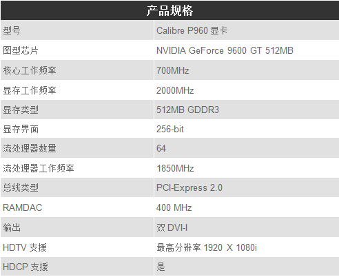 P960显 卡出厂已经超频,核心工作频率高达700MHz,流
