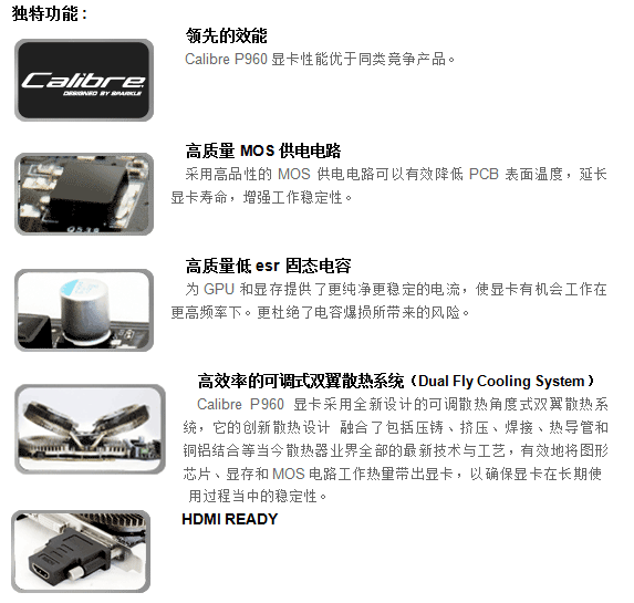 从繁重的软件加速工作当中解放,因此显著降低系统整体功耗、噪音和发热量。用户还可另行选配的DVI-HDMI转接头,即可尽情享受HDMI接口带来的高解析