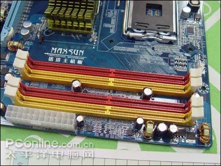 6 x5 |$ ^! q" W, R4 A 4条内存插槽,支持双通道DDR2 667/800内存,最大支持8GB;完整的内存独立供电更稳定。